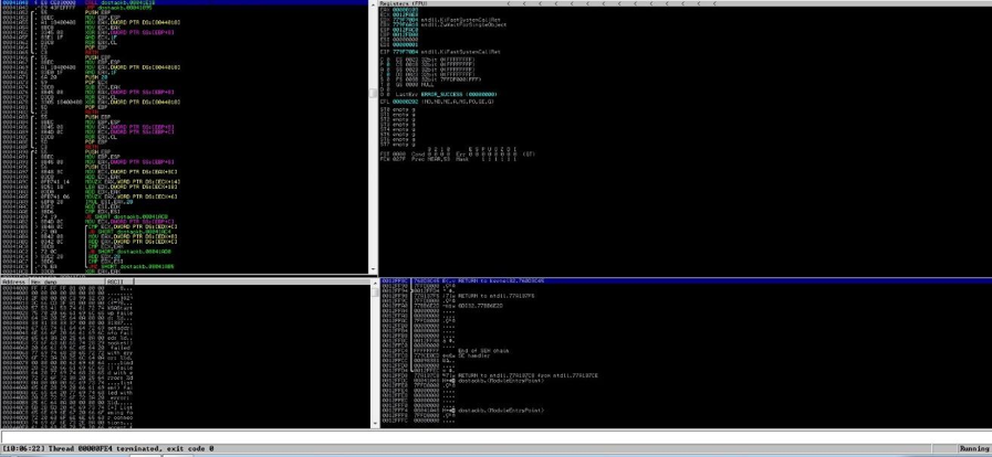 2. Open both dostackbufferoverflowgood. exe application and Immunity Debugger. Afterward, attached dostackbufferoverflowgood into the Immunity Debugger, as the picture below: